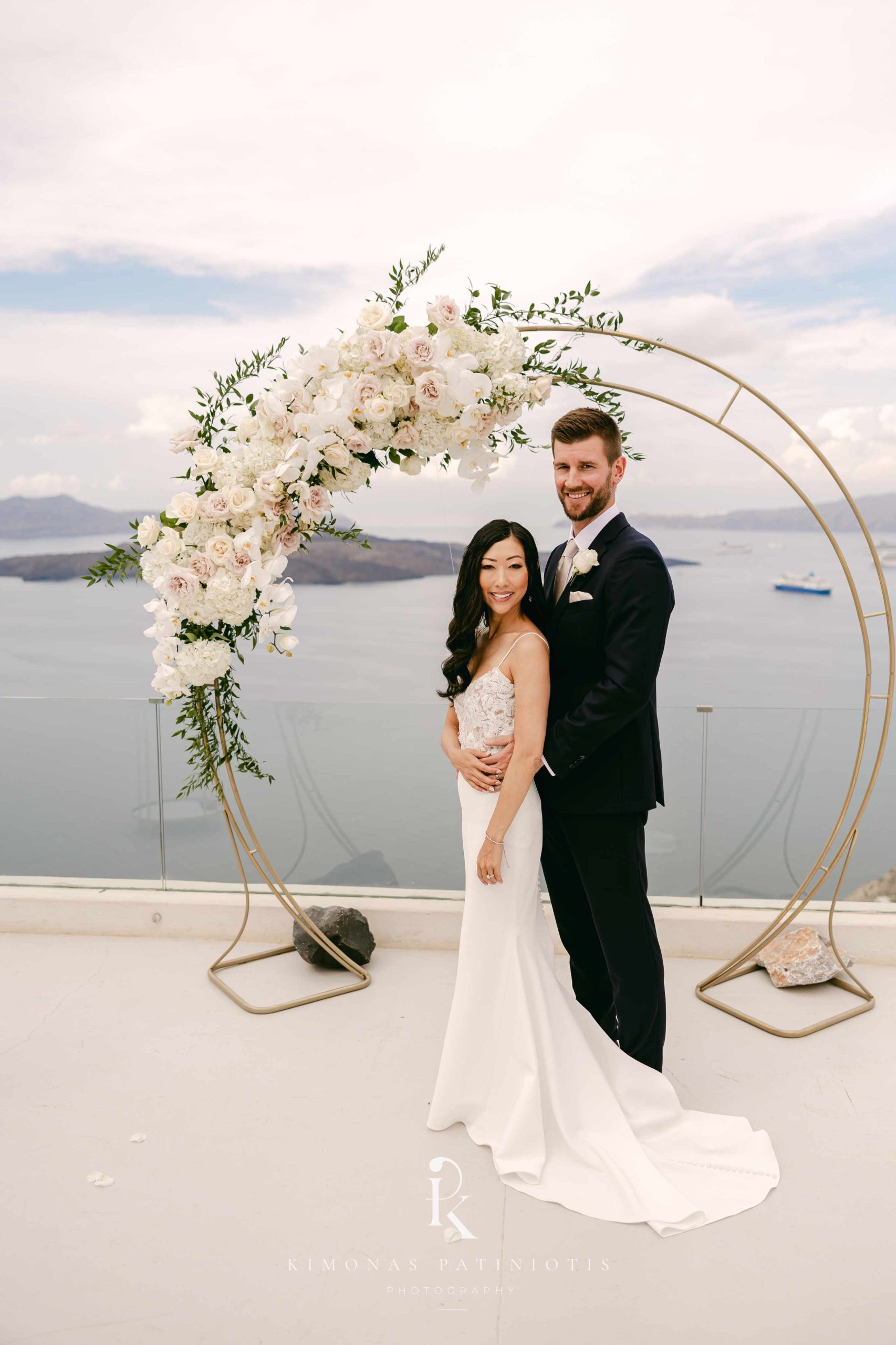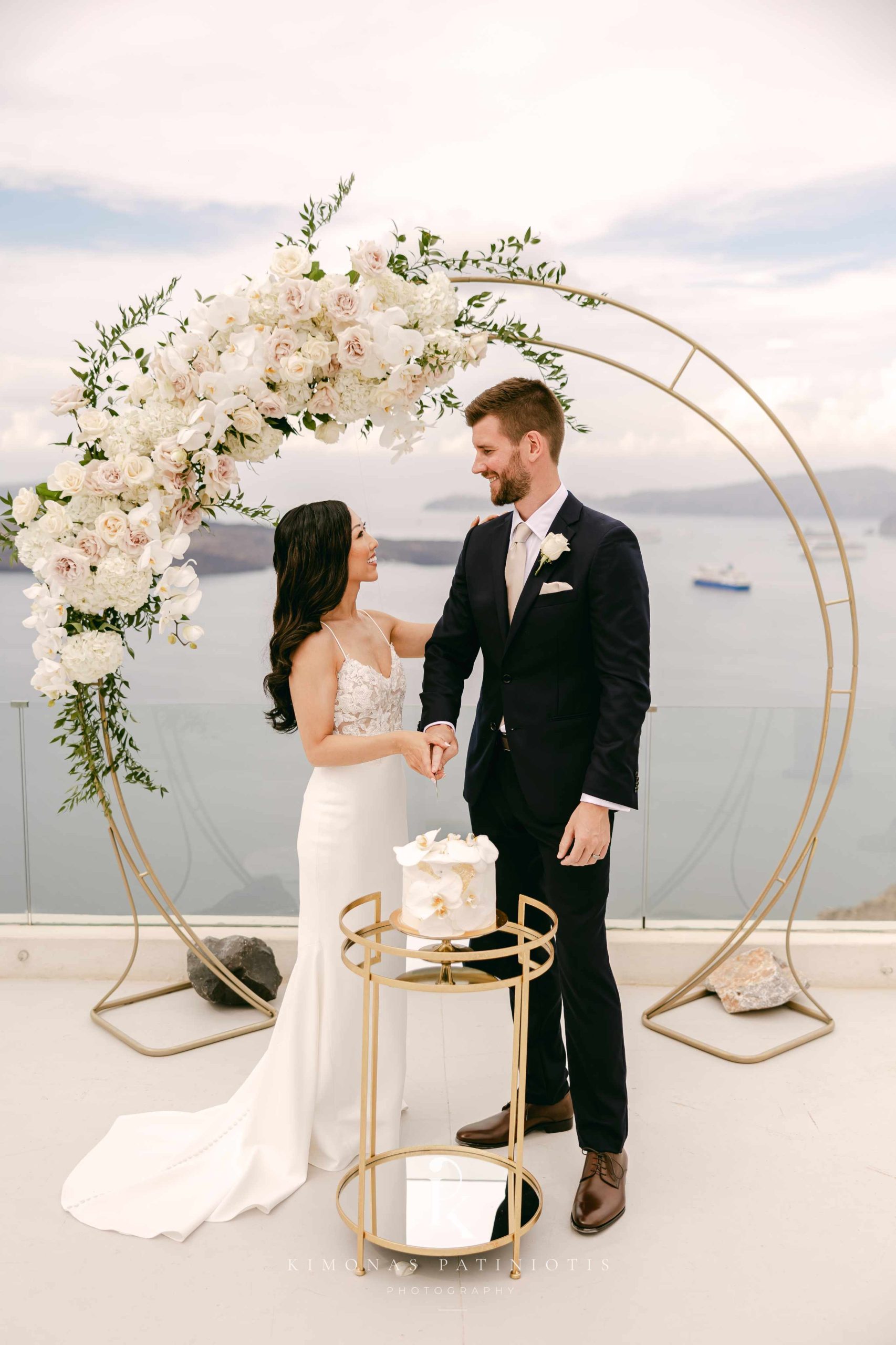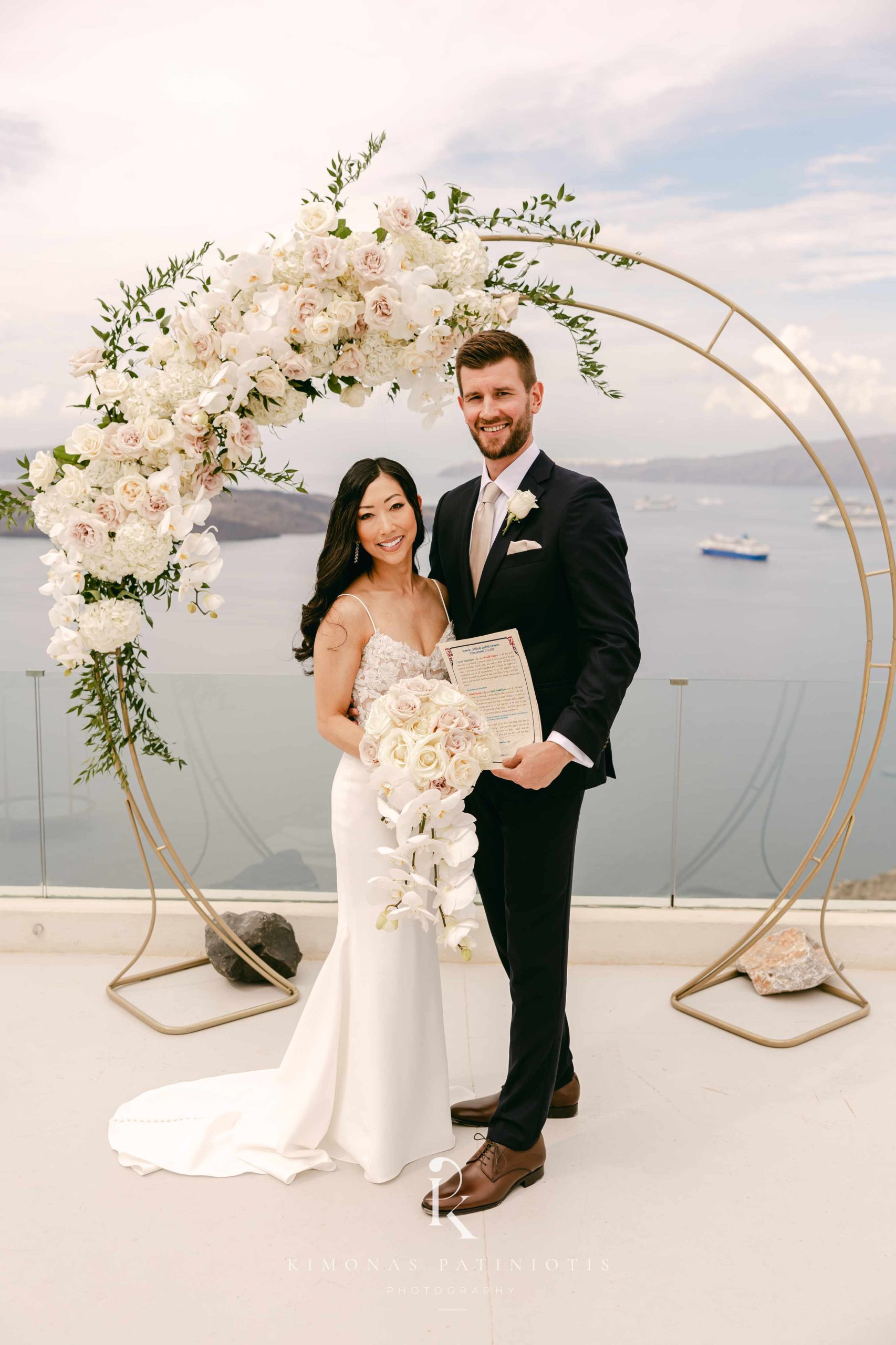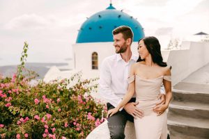 Additionally, elopements in Santorini offer a romantic and intimate setting for couples seeking a more personalized celebration. Michele and Kevin’s elopement was particularly meaningful, as it marked the bride’s successful recovery from cancer. This joyous occasion symbolized triumph over adversity and a celebration of love in its purest form. Inspired by their journey? Let Aria Santorini Weddings help you plan your dream event. Whether you’re envisioning a romantic elopement, a grand celebration, or a unique photoshoot, our 15 years of expertise will ensure a luxurious, personalized experience.